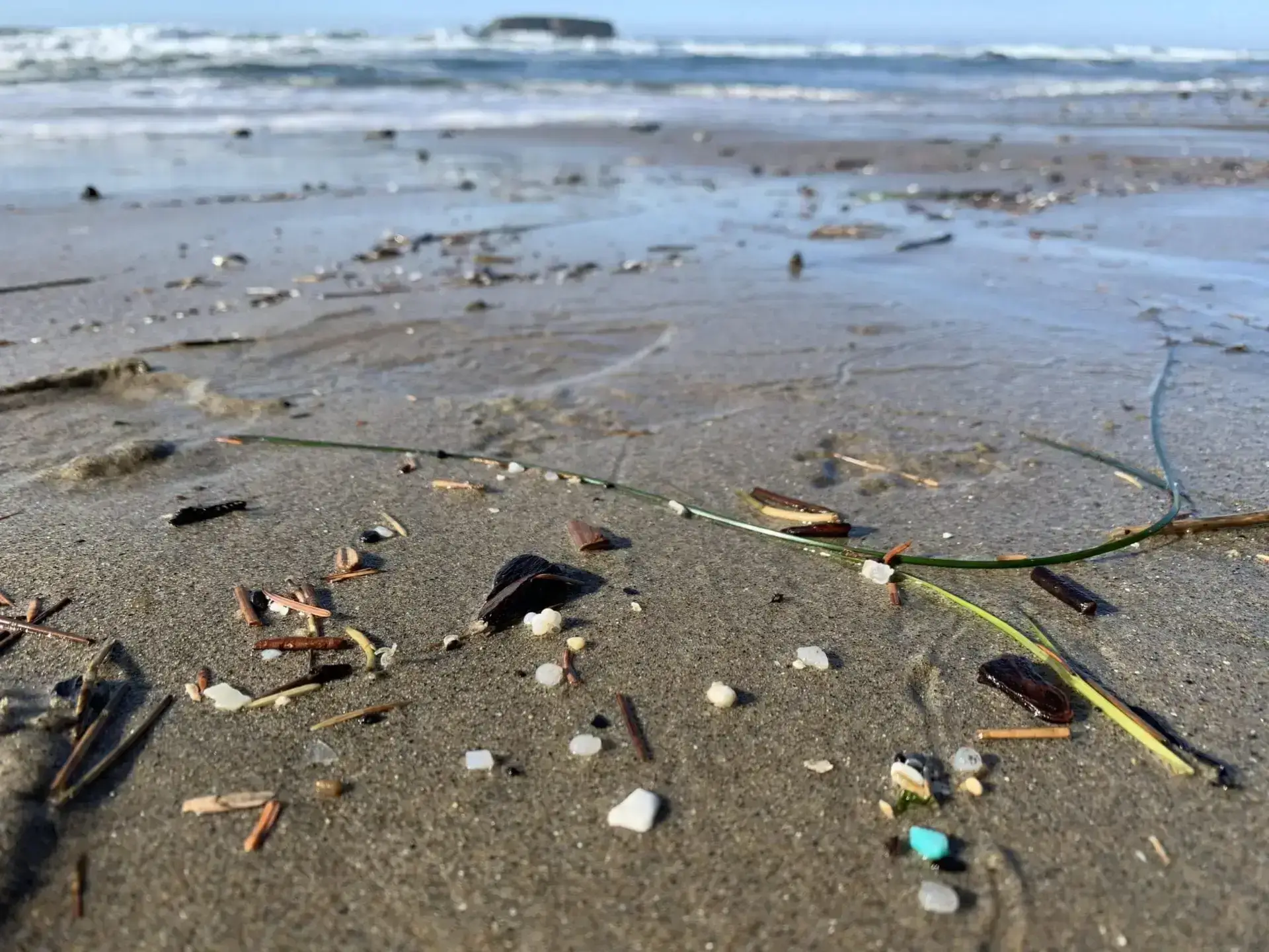 As nurdles travel in the water and on land, they break down and get smaller, which makes them harder to clean up. They get mixed with the sand, litter, and seaweed along the shore.