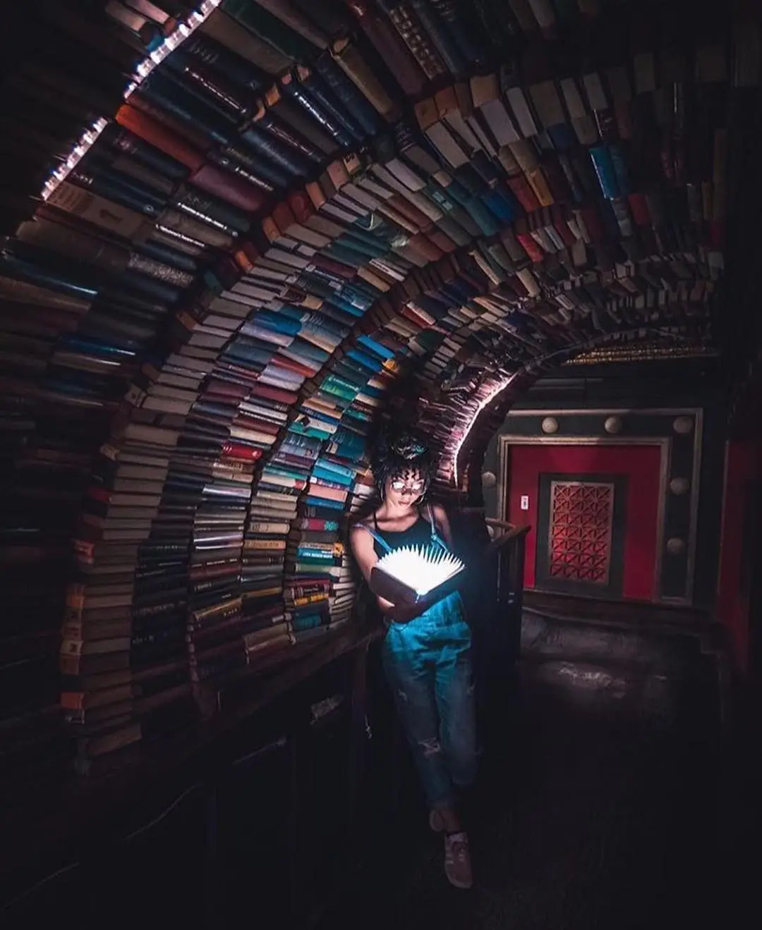 California The Bookstore has a epic wonder tunnel made of books